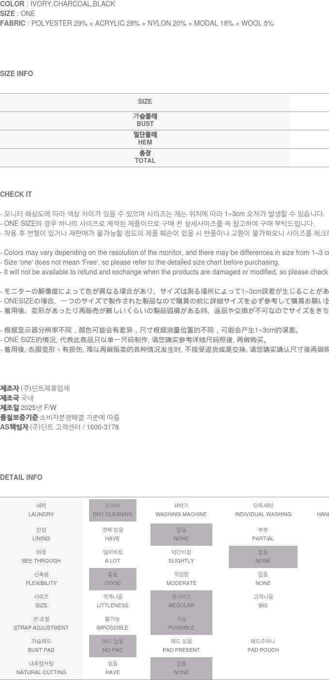 洗滌方式 : 乾洗 手洗